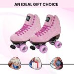 OUTDOOR ROLLER SKATES MATERIAL: Our Boardwalk Roller Skates are made with a mixture of Nylon, Aluminum, Leather, Suede, and Rubber which makes them softer from the inside. They have long laces for better grip of your ankle support