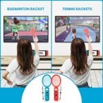 🎾【Turn Your Home Into a Sports Stadium】: Swing the golf club, transform your joycon into Mario Golf Super Rush golf club. Switch leg strap for nintendo switch soccer games. Sword for Chambara, Pokemon Sword and The Legend of Zelda. Wrist Wraps for volleyball. Tennis rackets for Mario Tennis Aces. Badminton Racket for badminton. Joy-Con Wrist Bands for just dance 2022 switch 2021 2020 and Zumba Burn It Up!