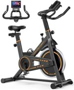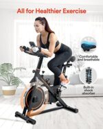 Comfortable and Quiet Riding: UREVO uses a belt drive system, which is smoother and quieter than traditional chain transport. Never worry about disturbing neighbors or sleeping children. Our stationary bike has a built-in shock absorption system that protects your spine and knee joints. And the professional race-grade cushion will make your ride more comfortable.