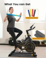 Brake And Resistance:What you get is not only a high-quality exercise bike, but also 4 resistance bands and an exercise equipment mat. Simply Turn The Knob To Increase Or Decrease The Adjustment To The Different Levels That Best Suit You. Push The Same Knob To Stop Quickly And Safely.