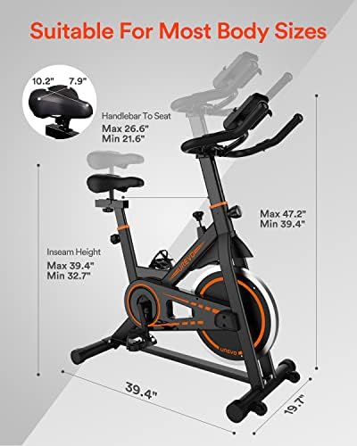 Comfortable and Quiet Riding: UREVO uses a belt drive system, which is smoother and quieter than traditional chain transport. Never worry about disturbing neighbors or sleeping children. Our stationary bike has a built-in shock absorption system that protects your spine and knee joints. And the professional race-grade cushion will make your ride more comfortable.