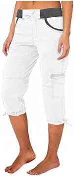 Pants for Women Trendy Cropped Cargo Pants.Cargo pants for women elastic closure and adjustable drawstring.Women’s Hiking Cargo pants with 6 Pockets. 2 side pockets, 2 flap pockets on leg, 2 back flap pockets.Cropped cargo pants for women, lightweight breathable and comfortable fabric, not see through.Goes well with all kind of style tops in summer.Women’s Hiking Cargo Pants are ideal for outdoor activities such as traveling, hiking, camping, climbing, fishing, hunting, walking lounge casual or daily wear.