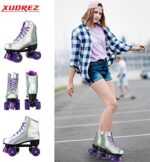 Price: (as of – Details) Product Description XUDREZ Roller Skates for Women Men High-top Suede Roller Skates Shiny Four Wheels