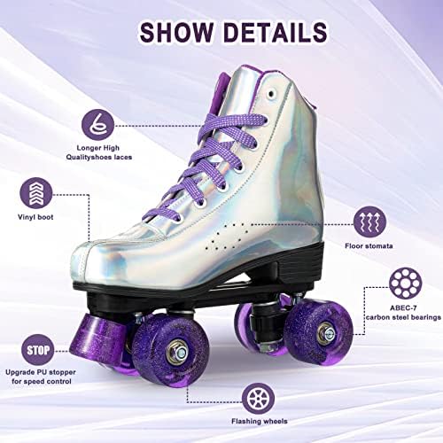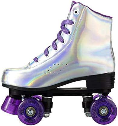 XUDREZ Roller Skates for Women Girls, Stylish Laser Silver Roller Skates, Classic Double-Row High-top Roller Skates for Beginner, Indoor Outdoor Roller Skates